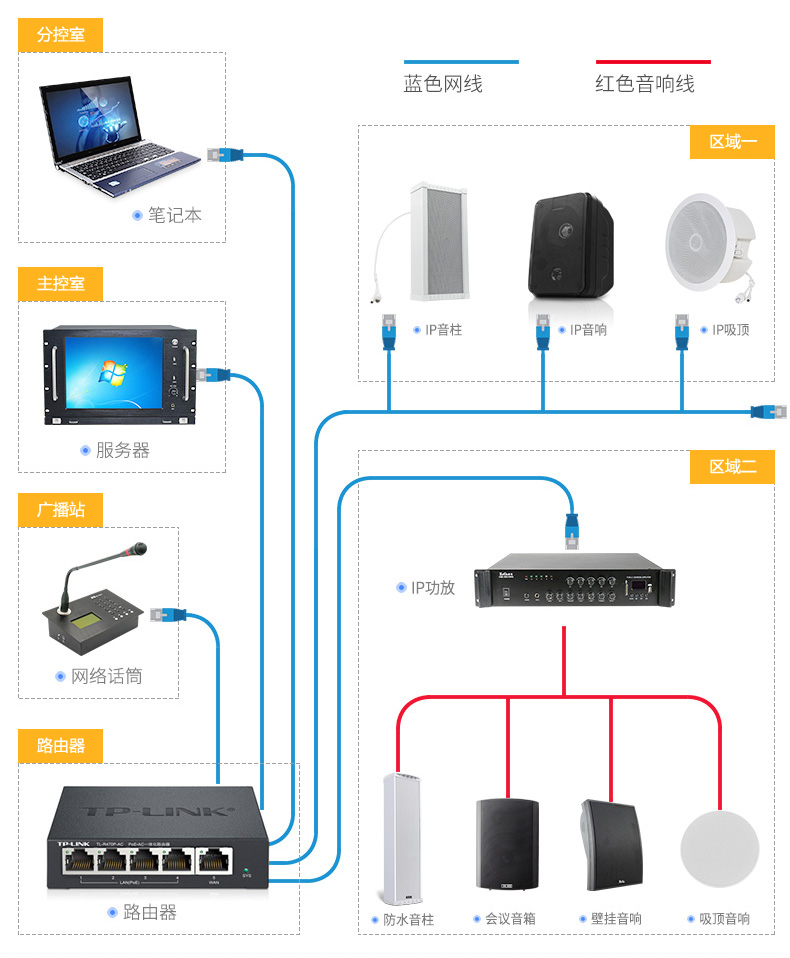 IP話筒、IP功放及廣播服務(wù)器根據(jù)實(shí)際項(xiàng)目需求進(jìn)行匹配。