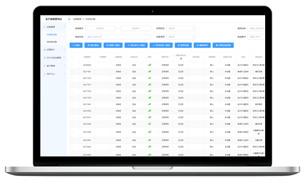 設(shè)備管理/客戶商戶管理/支付資金管理/經(jīng)營數(shù)據(jù)分析與統(tǒng)計(jì);