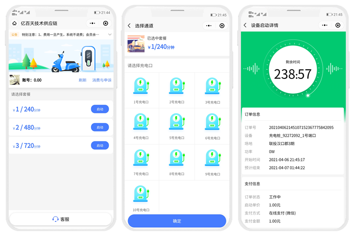 小程序覆蓋主流平臺,微信、支付寶 用戶均可體驗(yàn)簡單快捷的充電流程;